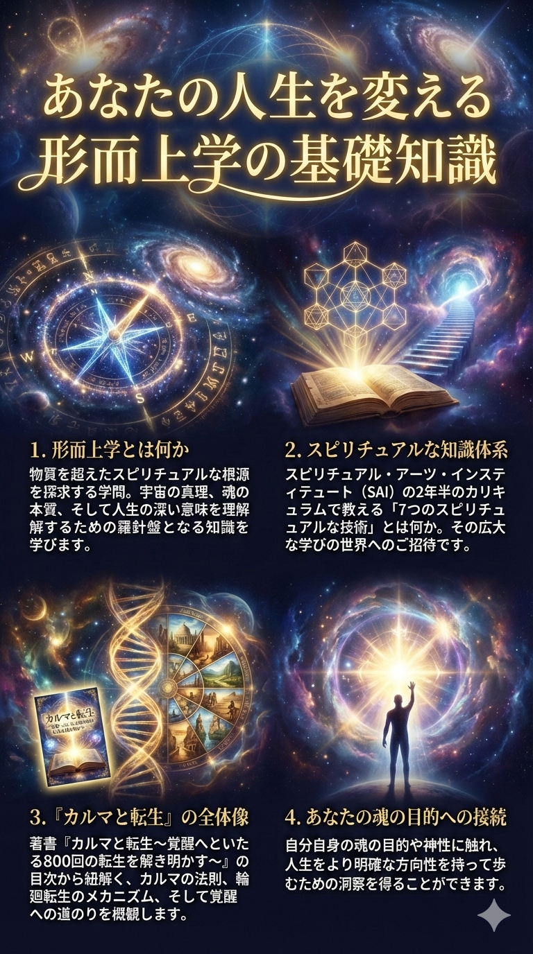 このワークショップでは、単なる知識としての輪廻転生ではなく、私たちが生と死を繰り返す背後にある深い叡智とメカニズムを探求します。